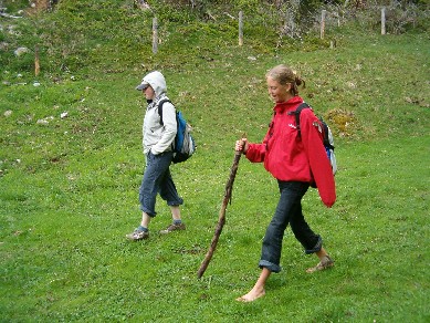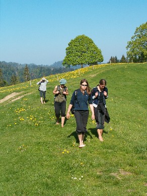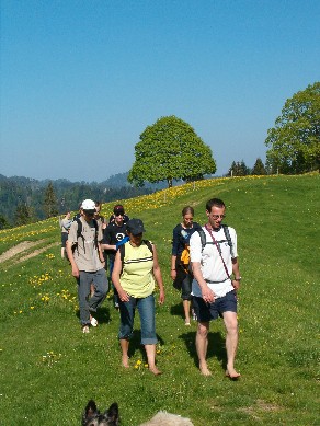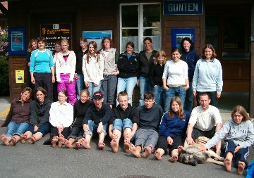 Etwas nach 11 Uhr starteten wir in Entlebuch: 20 Schülerinnen, 3 Schüler und 2 Lehrer. Wer wird nach 100 km noch barfuss in Gunten ankommen? | |