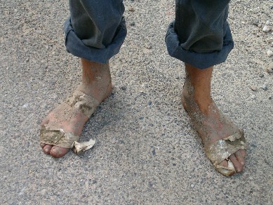 Bevor es heute losgeht, müssen die geschundenen Füsse