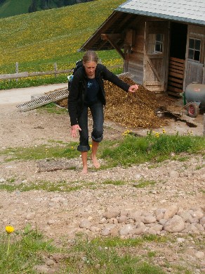 schon ca. 8 Stunden barfuss unterwegs. Ja, sie hat es geschafft! Wir übernachten im Stroh, aber nicht alle schlafen gut! |