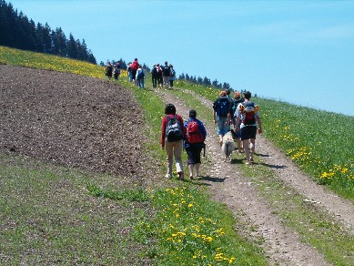 Der höchste Punkt unserer Tagesetappe ist geschafft! Wir sind kurz vor dem Ziel. Zum Hof der Familie Thalmann sind es nur noch ca. 15 Minuten. | |